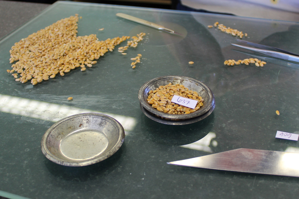 Once samples are approved, the business of turning the harvested grain into prime, ready-to-drill seed, begins. Processing relies on a series of cleaning procedures to remove chaff, other plant seeds, broken grains and other debris that might be present. The grain is passed over numerous, vibrating screens – each with differing mesh profiles and sizes – to ‘sieve out’ unwanted material. Air is also blown through the grain to lift out dust and any dry, light weight contaminants. Clean seed then moves on to be treated, if necessary, before being packaged ready for sale or stored.